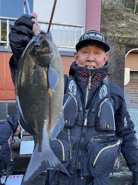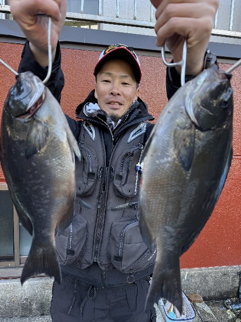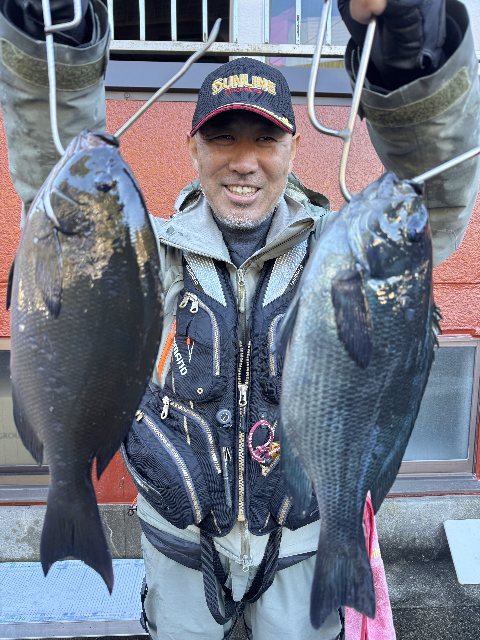 谷口あきのぶ氏 尾長グレ40〜36センチ2枚爆風の中での釣りでした明日からは釣り日和に
