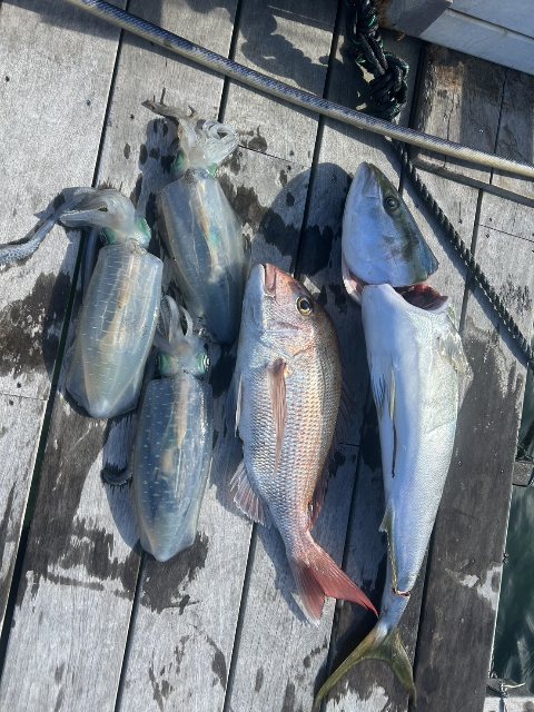 レンタル長田氏ワラサ、真鯛、アオリイカルアー釣りで